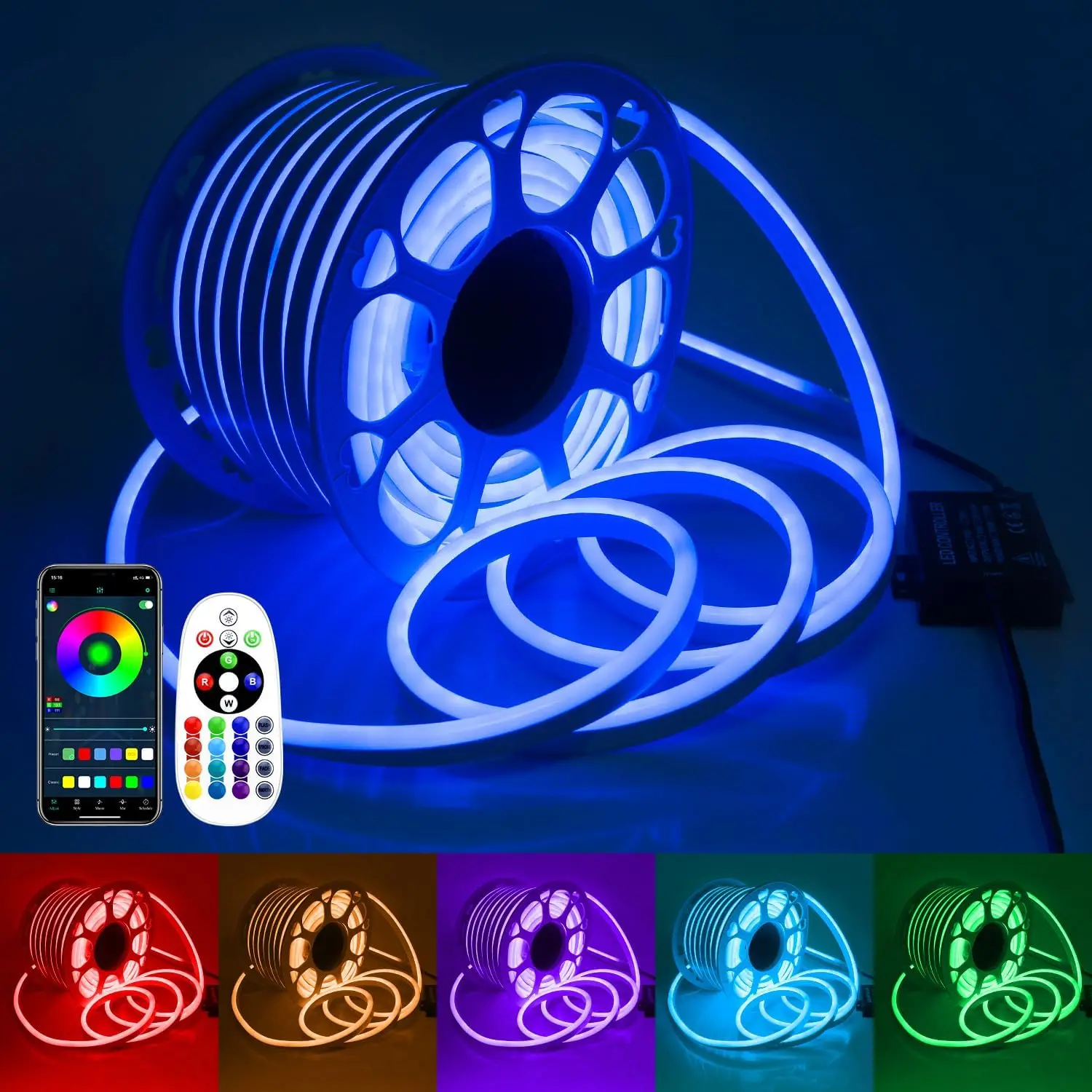 RGB LED Neon Rope Lights 100ft with Remote Control